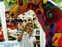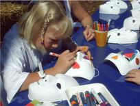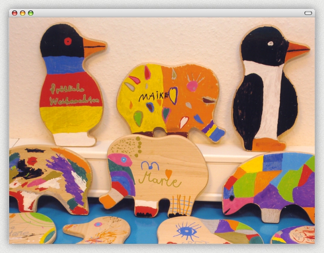 Seitdem wir am Tag der offenen Tür im Zoo diese bunten Brettchen bemalt haben, möchte ich nur noch davon frühstücken. Meine Mutter meinte aber, das Brettchen könnte man auch gut als Untersetzer für Töpfe verwenden. Meine Oma, die mit mir im Zoo war, hat sogar auch ein Brettchen für sich gemacht. Schön war, dass man sich von allen Zootieren eines aussuchen konnte. Ich habe einen Elefanten gemacht, der halb gelb und halb orange ist.